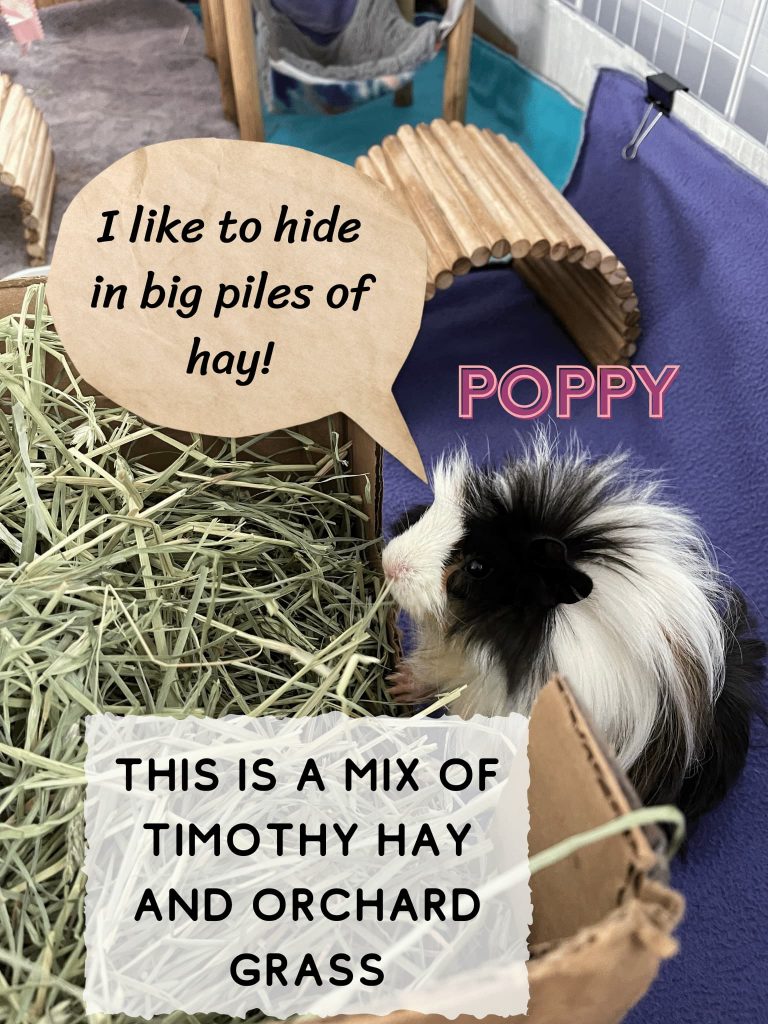 Hay is to Guinea Pigs like water is to fish. They need unlimited amounts of hay 24/7 to survive. It’s 80% of their diet!