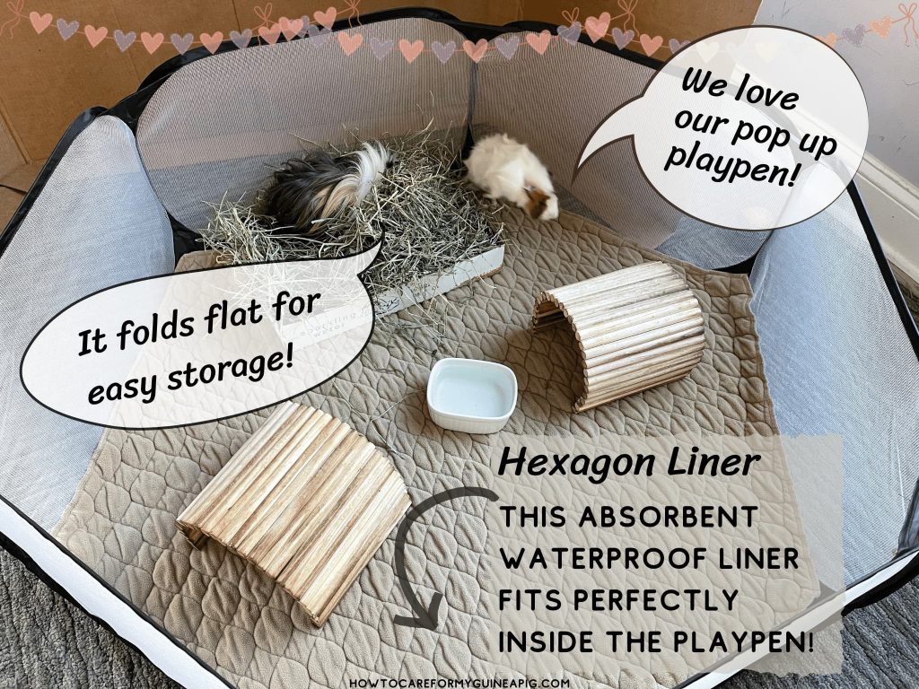 - We like to use this expandable pet play pen to create a safe space for our Guinea Pigs to roam around. Bonus, it’s big enough for us to sit in too.